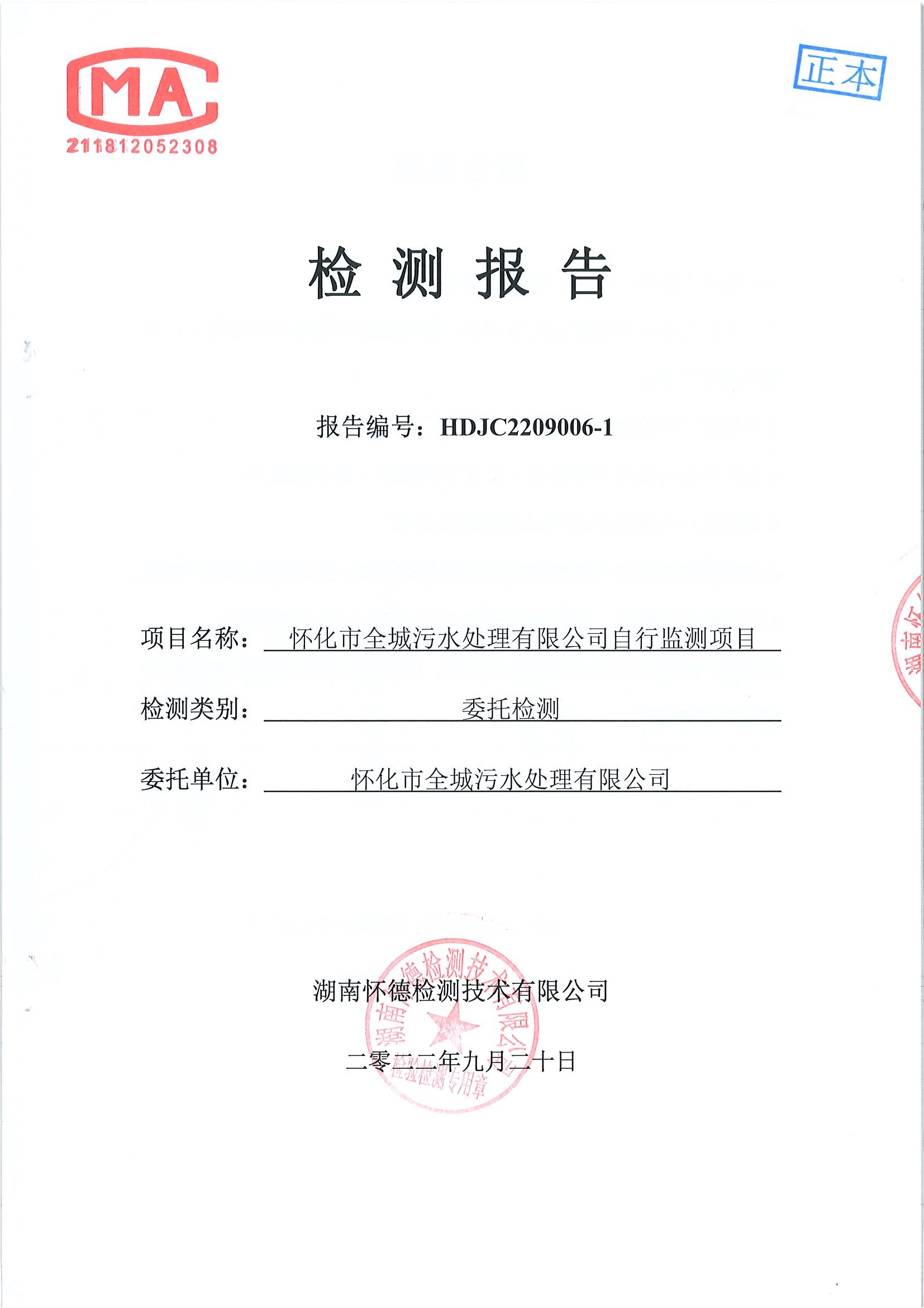 湖南怀德检测技术有限公司 2025年10月 出水水质检测报告